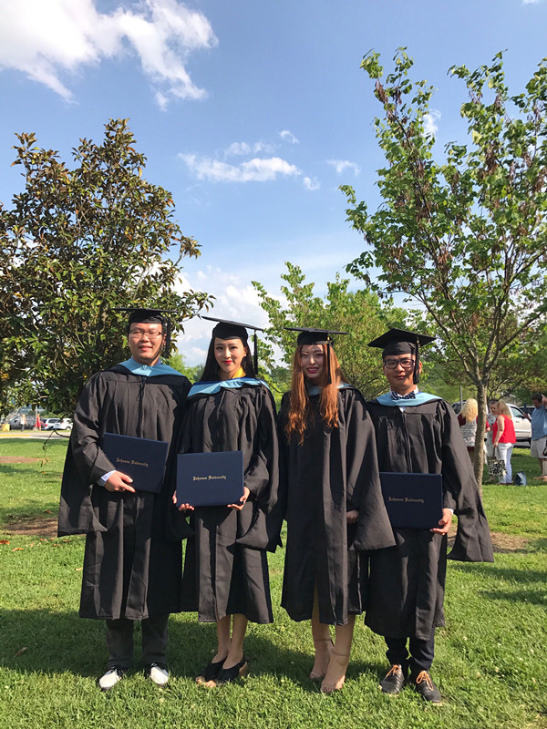 在刚结束的美国约翰逊大学毕业典礼上,四名教育技术学学子参加了校方举办的隆重的硕士加冕活动,获得了美方教育技术学硕士学位证书。