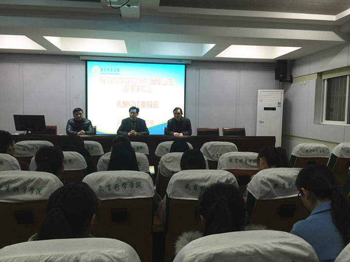 本网讯(教科院 余露 王思雨 吕碧君 侯晓丽)随着2017年研究生考试国家线的公布,数月来的等待与纠结在这一刻虽然清晰,但对未来的不安和紧张也随之而来。为缓解考研学子复试与调剂的焦虑心理,近期,教科院毕业班各专业根据学生需要开展了形式多样的考研复试与调剂指导会。
