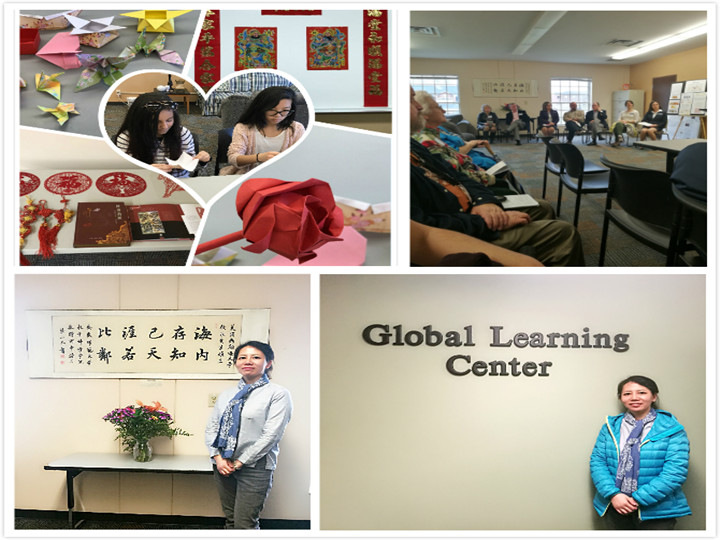 随后,我院访问学者陶佳老师和部分中国留学生参加了约翰逊大学的Global learning center剪彩仪式。Global learning center主要由该校中国教师筹建,主要致力于全球文化推广,作为约翰逊大学重要的文化交流窗口和平台,该中心前期已举办多个中国传统文化节日交流活动。刚刚过去的农历春节期间,来自我校的学生积极投身于中外文化交流活动,用有着浓郁中国传统文化特色的对联、灯笼、窗花等饰品布置活动会场,现场展示剪纸、折纸、书法等中国民俗文化,吸引了一批外国学生前来学习;新年晚宴中,学校领导和教师代表、中国师生以及诺克斯维尔当地华人欢聚一堂,校长Dr.Weedman、副校长Dr.Smith为在场的孩子和中国学生派发新年红包,与会成员品味着中国美食,沐浴着中国文化,在其乐融融的氛围中共度新春佳节。每逢重要的中国传统文化节日,约翰逊大学Global learning center便会承办类似活动,对促进中外文化交流,彰显中国特色,推动中国文化传播有着重要意义!