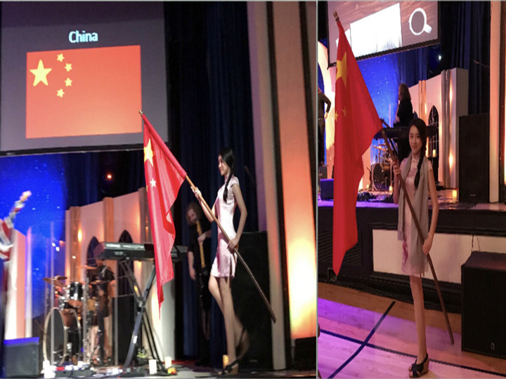 本次活动开幕式由各国学生手持本国国旗穿越舞台进行开场展示,担任中国旗手的是我校现代教育技术中美合作硕士项目优秀学子朱永媛。伴随着悠扬的中国乐曲,她手持国旗缓步踏来,当各国友人目睹五星红旗的风采,当五星红旗在海外冉冉飘动的那一刻,在场的每一位中国人的心中都有一种不曾有过和难以抑制的激动,那一刻真切的体会到每一位海外华人对祖国母亲的思念,这种激动是来自祖国母亲的强大力量。开幕式活动结束后,朱永媛感慨道:“在异国他乡高举五星红旗走过舞台的时候,内心无比自豪,向世界展示中国风采是每一位中华儿女义不容辞的责任和义务,将是人生中难忘的经历!”