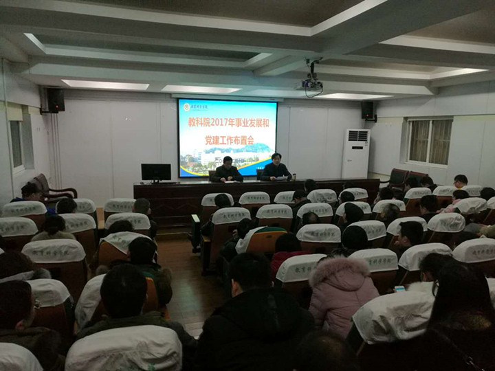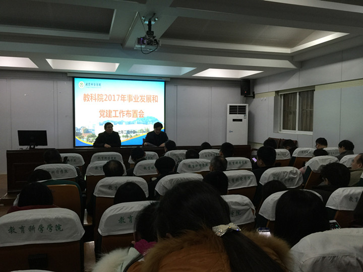 本网讯(教科院 文/马兴 图/莫大贡)新学期,新征程,为凝心聚力,齐促发展,2月10日下午,我院在学院学术报告厅召开了2017年事业发展与党建工作布置会,部署2017年工作,共谋教科发展。会议由学院党委书记刘晓宇主持。