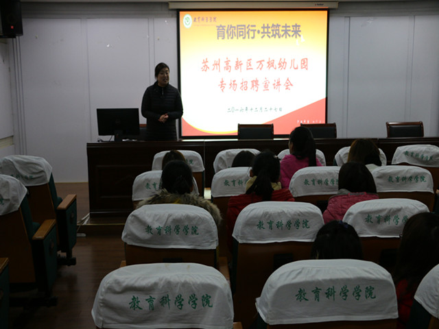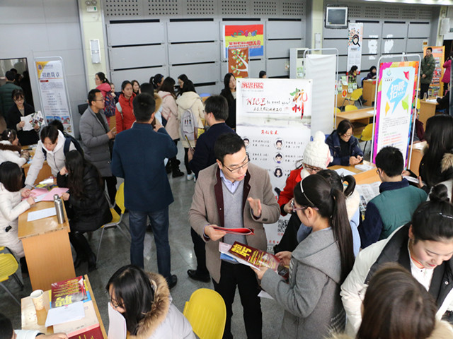 本网讯(教科院 马兴)你的未来,我们助航。为全力做好学生毕业就业工作,搭建毕业生与用人单位交流“直通车”,12月29日下午教科院举行了学院第三届“育你同行”专场招聘会。江苏学大教育、南京武家嘴实验学校、苏州博世堂教育培训中心、北京洪恩教育科技股份有限公司、滁州市信息工程学校、安师大幼教集团等来自省内外的近40家用人单位共提供就业岗位600余个,吸引了大批毕业生前来求职应聘。