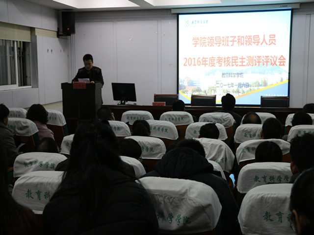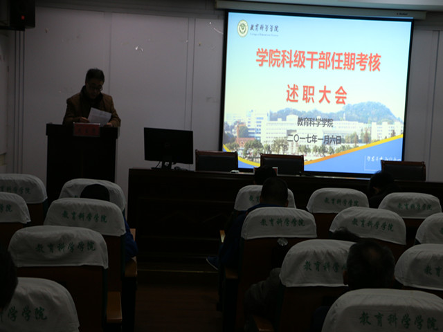 本网讯(教科院 马兴)神猴辞旧岁,金鸡迎新春。为做好学院2016年工作总结,谋划2017年学院工作,1月6日上午,365英国上市官网分层次开展了学院中层领导干部、科级干部、教辅人员和实验人员工作述职活动。学院全体教职工参加了述职大会。会议由学院党委书记刘晓宇主持。