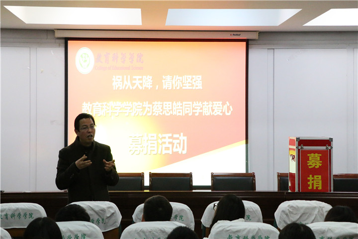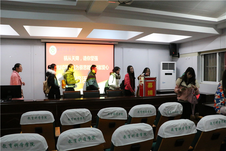 在得知蔡思皓同学的情况后,学院领导高度重视,爱心捐款行动迅速在我院开展起来,在不同场合下多次组织师生在第一时间向这个坚强困难的家庭献上自己的一份爱心。涓滴之水成海洋,颗颗爱心变希望。爱心无价,真情永存,虽然这些捐款,对于那笔巨额的医疗费来说只是杯水车薪,但我们相信,大家的爱心,一定会为蔡思皓同学送去温暖,也增进他击退病魔的信心。愿我们的点滴付出,能成全一份勇敢的坚持,传递一份生命的热度,愿蔡思皓同学能够早日康复,重返校园,回到我们身边!