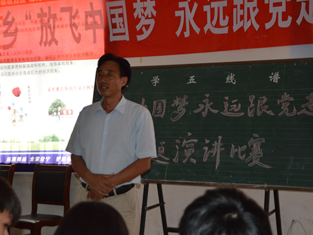 演讲比赛结束后,冉庙中学团委负责人党员高川老师给我们上了语重心长的一课。团委老师先是对“放飞中国梦,永远跟党走”演讲比赛的精彩表现做出精彩点评,并指出演讲首要注重的是“演”,然后再是“讲”,站在演讲台上的你就是一名演员,要做的就是感染观众。作为一名优秀的共产党员,高川老师不仅用严格的标准要求自己,而且鼓励实践团队中的每个人要积极向党组织靠拢,为队员们介绍了“两学一做”学习教育的基本内容以及学校的具体做法。团队每位成员都受益匪浅,立志要更加努力的学习专业知识,牢记为人民服务的宗旨,为成为一名光荣的党员而奋斗。