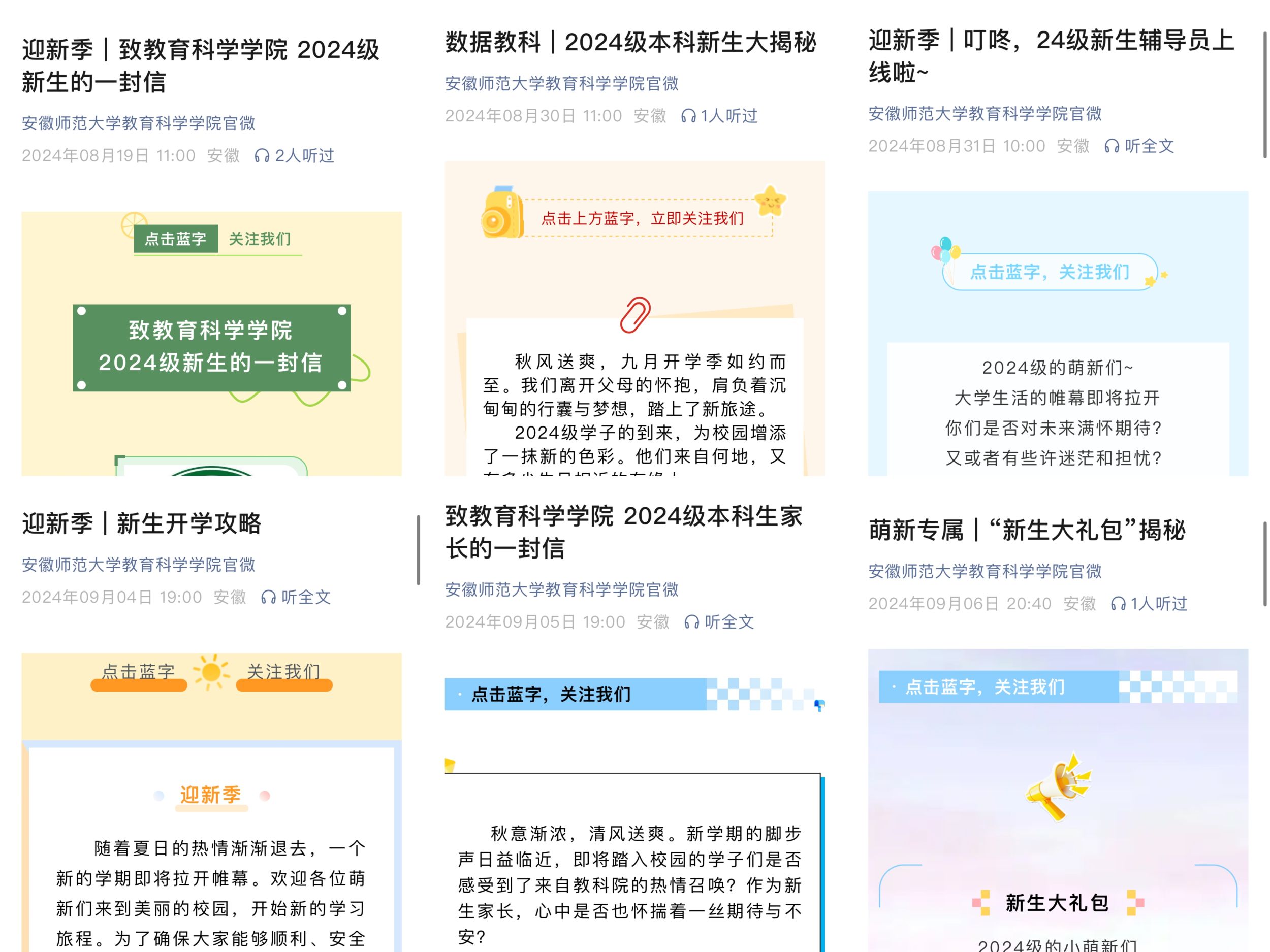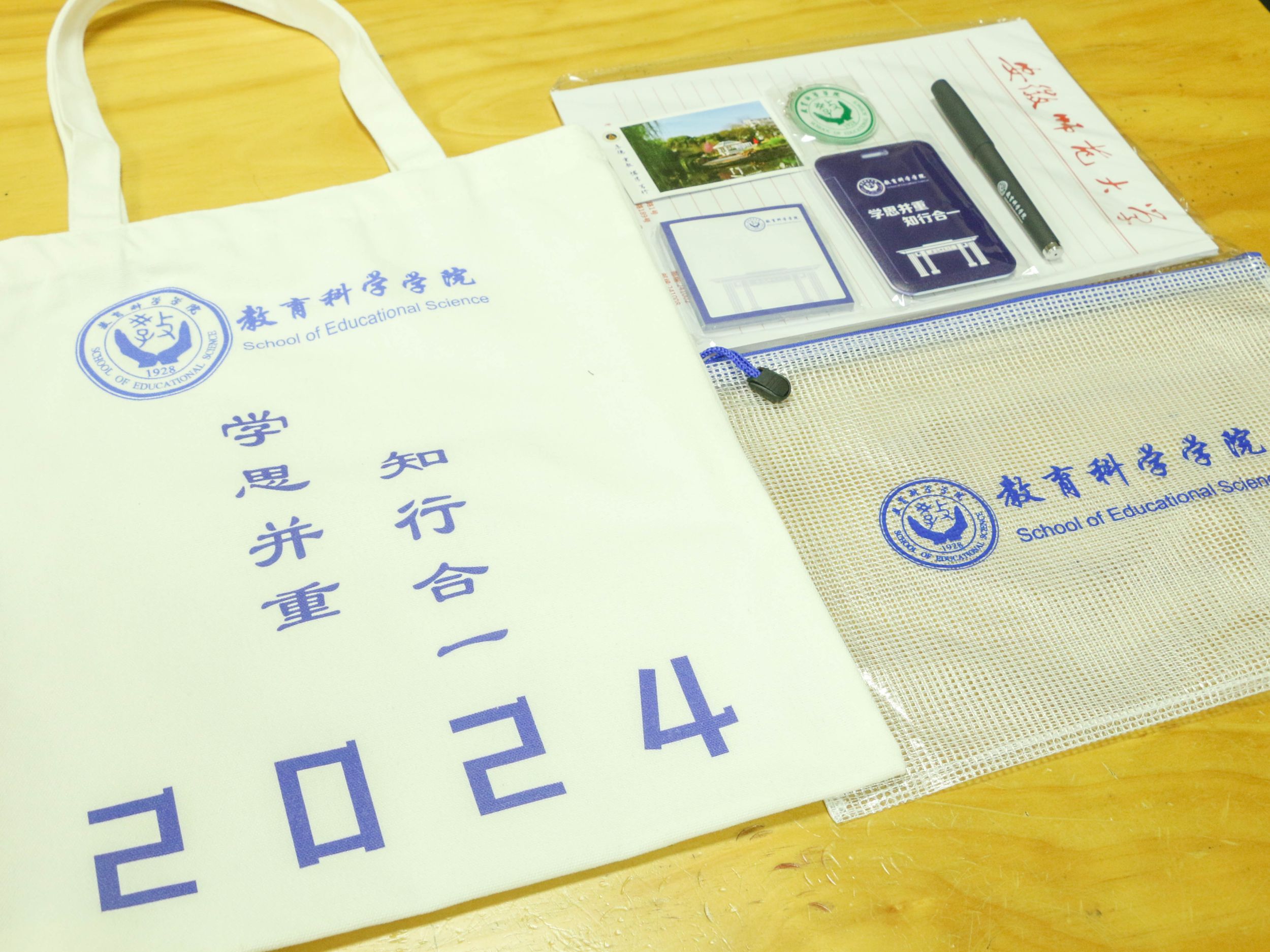 喜迎新生活,共待新未来。自筹备迎新工作以来,教科院通过微信公众号、官Q等媒介多途径开展宣传活动,推出“致新生的一封信”、“新生开学攻略”等专题报道,助力新生更快熟悉校园生活。24级辅导员蔡文、王琳积极组建2024级新生群及时传达信息,帮助同学们充分准备开学事宜。教科院为2024级新生精心准备了“新生大礼包”,其中包含师大校园卡、印有院徽的钥匙扣以及印有校园美景的明信片等物品,师大元素搭配学院特色,让新生感受浓浓教科情。