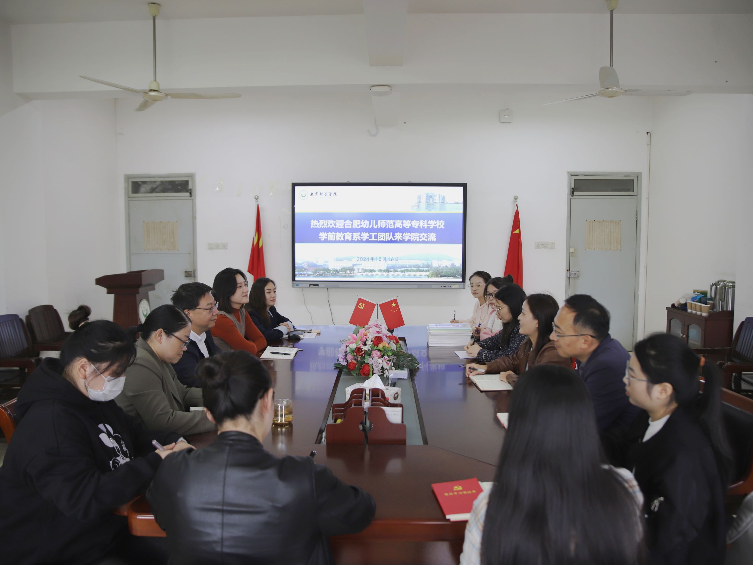 10月16日上午,合肥幼儿师范高等专科学校学前教育系学工团队及部分毕业生代表来365英国上市官网交流学习活动。院党委书记许国飞,院党委副书记杜凤,学院辅导员蔡文、赵茜以及金凤仙参加本次交流。