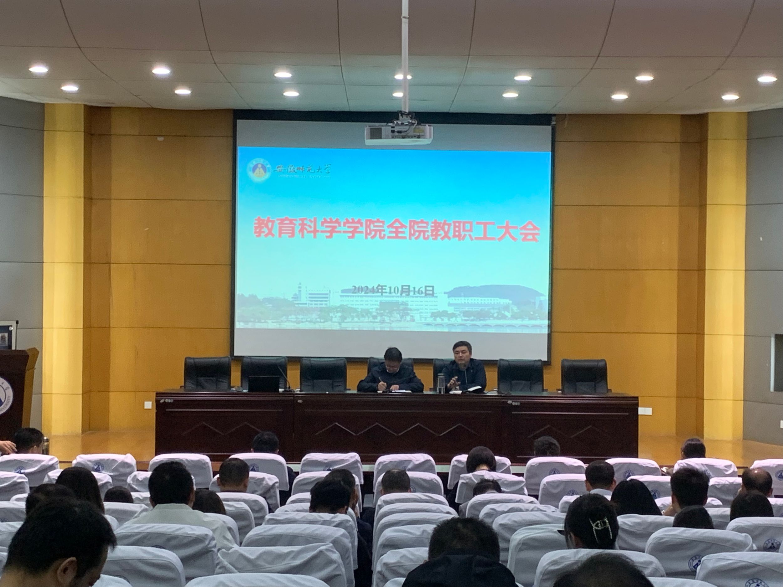 会上,院长李宜江做了题为《学习领会全国教育大会精神 立足本职岗位做出更大贡献》的专题辅导。他对改革开放以来历次全国教育大会进行了系统回顾,重点分享了对这次全国教育大会精神的学习体会,着重解读了教育的三大属性、教育强国的六大特质、教育强国建设的五个重大关系以及教育强国建设的五大战略任务,呼吁全体教职工将大会精神转化为岗位职责与动力,为教育强国建设做出更大贡献。许国飞在主持会议时要求,学院教职工要坚持以钉钉子精神把大会精神落到实处,为以中国式现代化全面推进中华民族伟大复兴作出新的更大贡献。