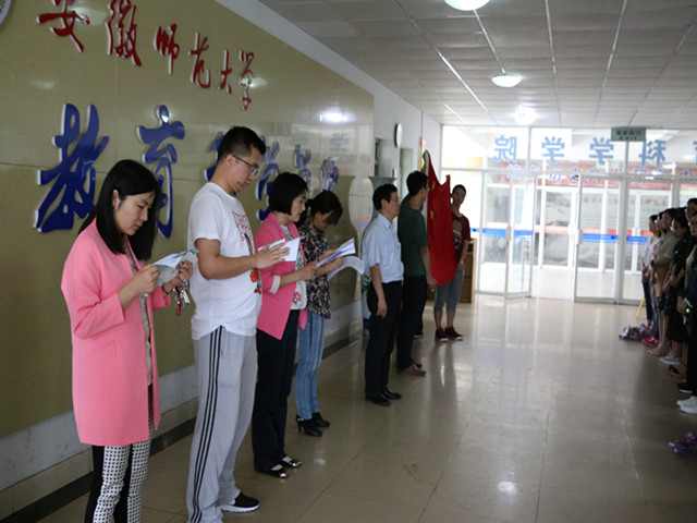 会上,马兴老师首先宣读了学院《关于在全体党员中深入开展“亮身份、作承诺、当先锋、树形象”活动的通知》,她指出学院将围绕“两学一做”学习教育要求,通过挖掘、选树、宣传优秀的师生党员事迹,开展一系列“党员好身影”活动,提醒党员师生牢记党员身份,争做合格党员。学生党员代表艾瑞雪现场做了承诺宣言,她认为大学生党员是学生群体中的先进分子和骨干力量,要努力做到思想先进、学习优秀、实践积极,这样才能在广大同学中树立学生党员的良好形象,也能影响和团结广大同学同圆大学梦、共筑中国梦,她倡议学生党员要带头承诺:勤学修德树模范,明辨笃实当先锋。随后,在张如华地带领下,全体党员整整齐齐地佩戴起党徽并在龚伟老师的带领下再一次庄严神圣地宣读了入党誓词。刘晓宇在活动结束时强调,“两学一做”,基础在学,关键在做,主体是每一个党员个体。为了更好地促进“两学一做”,学院积极探索适合学生党员事迹的活动内容和活动方式,近期学院还将开启“两学一做·党章好声音”、“两学一做·百日千题人人答”、“两学一做·人人抄党章”活动,旨在提升学习教育的效果,让每一个党员养成自觉学习党章党规、系列讲话,自觉践行“四讲四有”标准,争当先锋模范的党员意识,并在实践中勇于践行党员风采。他希望全体党员要成为“两学一做”学习教育的先锋,努力显示党员好声音、树立党员好身影,在学习、工作、为人民服务、实现中国梦的使命中充分发挥先锋模范作用,展现青年风采。