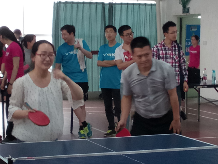 循环赛中,查晓虎、陶佳老师和杨一捷、黄朋丽等同学参加。教科院与法学院、生科院和物电学院分在B组。经过激烈的角逐,教科院以小组第二的成绩进入八强,顺利打入淘汰赛。淘汰赛中,聂竹明副院长以选手的身份和王芳老师带领研究生同学投入比赛,过婴宝老师和现场同学为我院选手加油打气。选手们正手抢攻、反手拧拉、大力扣杀等高超球技和团结协作、不畏困难、积极拼搏的比赛精神,一路过关斩将,赢得了阵阵掌声和喝彩,最终取得第六名的好成绩。整场比赛,我院选手本着“友谊第一,比赛第二”的精神与其他学院进行了良好的交流,导师和学生之间的情感交流也在精彩纷呈的比赛中得到了升华。
