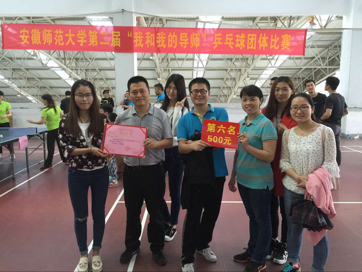 本网讯(吴悦 王玉思/文 臧宇/图)为丰富广大研究生课余文化生活,营造出欢乐和谐的校园文化氛围,增进研究生与导师之间的密切联系,5月28日下午,安徽师范大学第二届“我和我的导师”乒乓球团体比赛在花津校区南侧体育馆成功举办。本次比赛是安徽师范大学第九届研究生科技文化艺术节系列活动之一,吸引了全校15个学院的研究生和导师参加。我院高度重视此次活动,组织精兵强将,由聂竹明副院长带队,查晓虎、陶佳、王芳老师,研究生杨一捷、黄朋丽、吴悦等同学参加比赛。