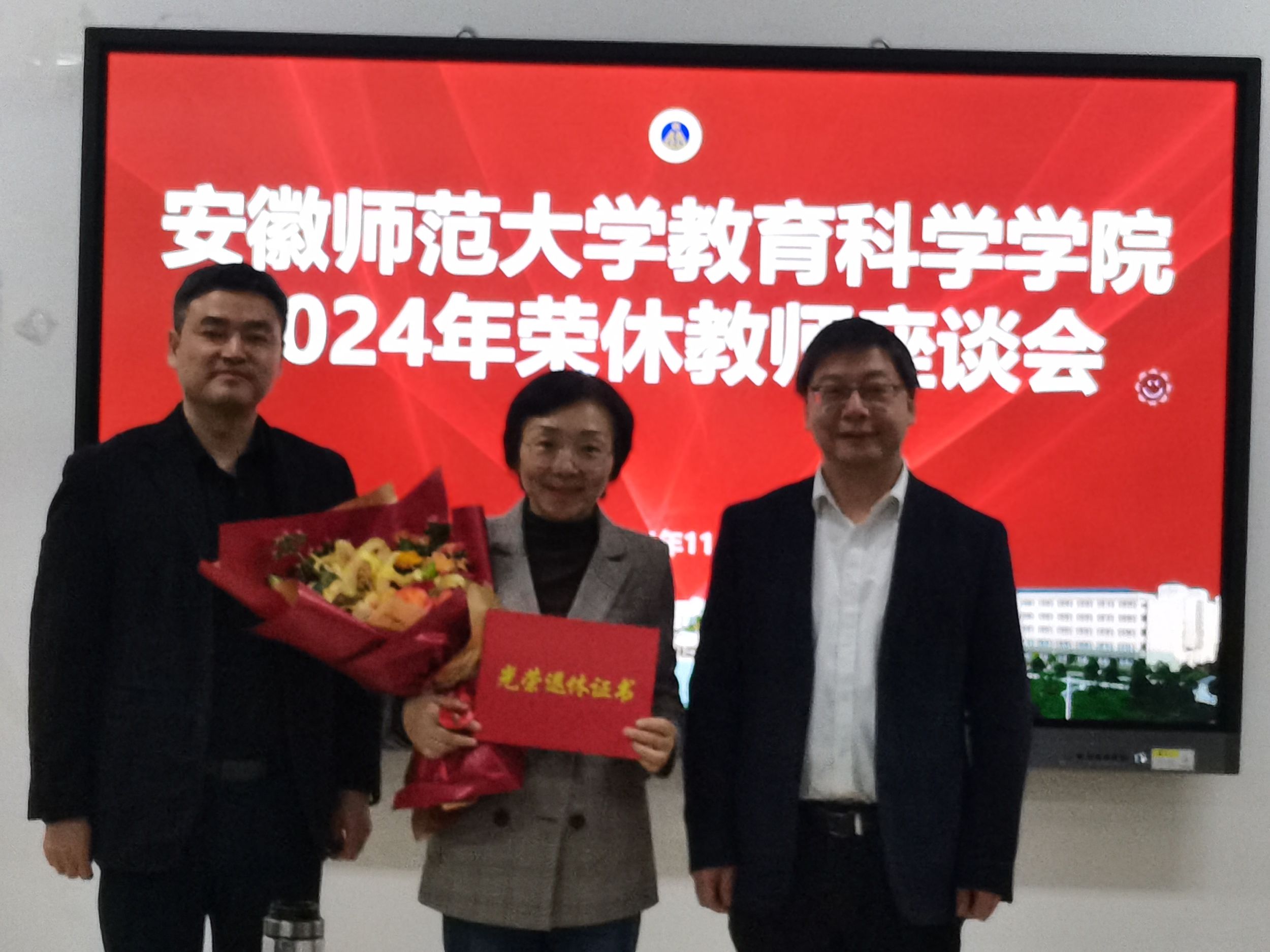 学院领导为荣休教师颁发了光荣退休证书,送上了鲜花和纪念品。座谈会在祥和愉快的氛围中圆满结束。