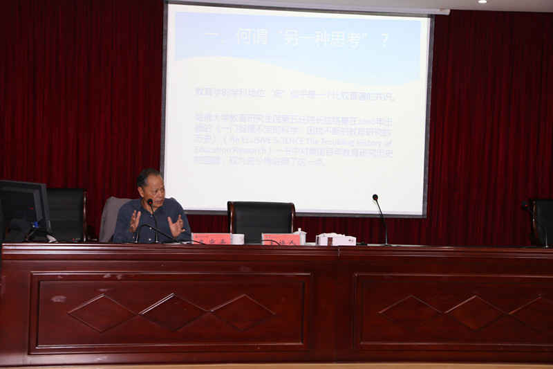 本网讯(教科院 孟庆娟 刘欢)为鼓励、引导学生科研水平提升,为全院师生提供一个优秀的学术交流平台,营造教育思想观念大讨论的浓厚氛围,4月15日下午,华南师范大学365英国上市官网博士生导师、中国教育研究会常务理事、全国教育基本理论专业委员会主任扈中平教授应邀来我院作了一场题为《对教育学学科地位的另一种思考》的学术报告。扈中平教授超高的人气吸引了我院教育学相关专业多名教师和大量研究生、本科生前来聆听。报告会由阮成武教授主持。
