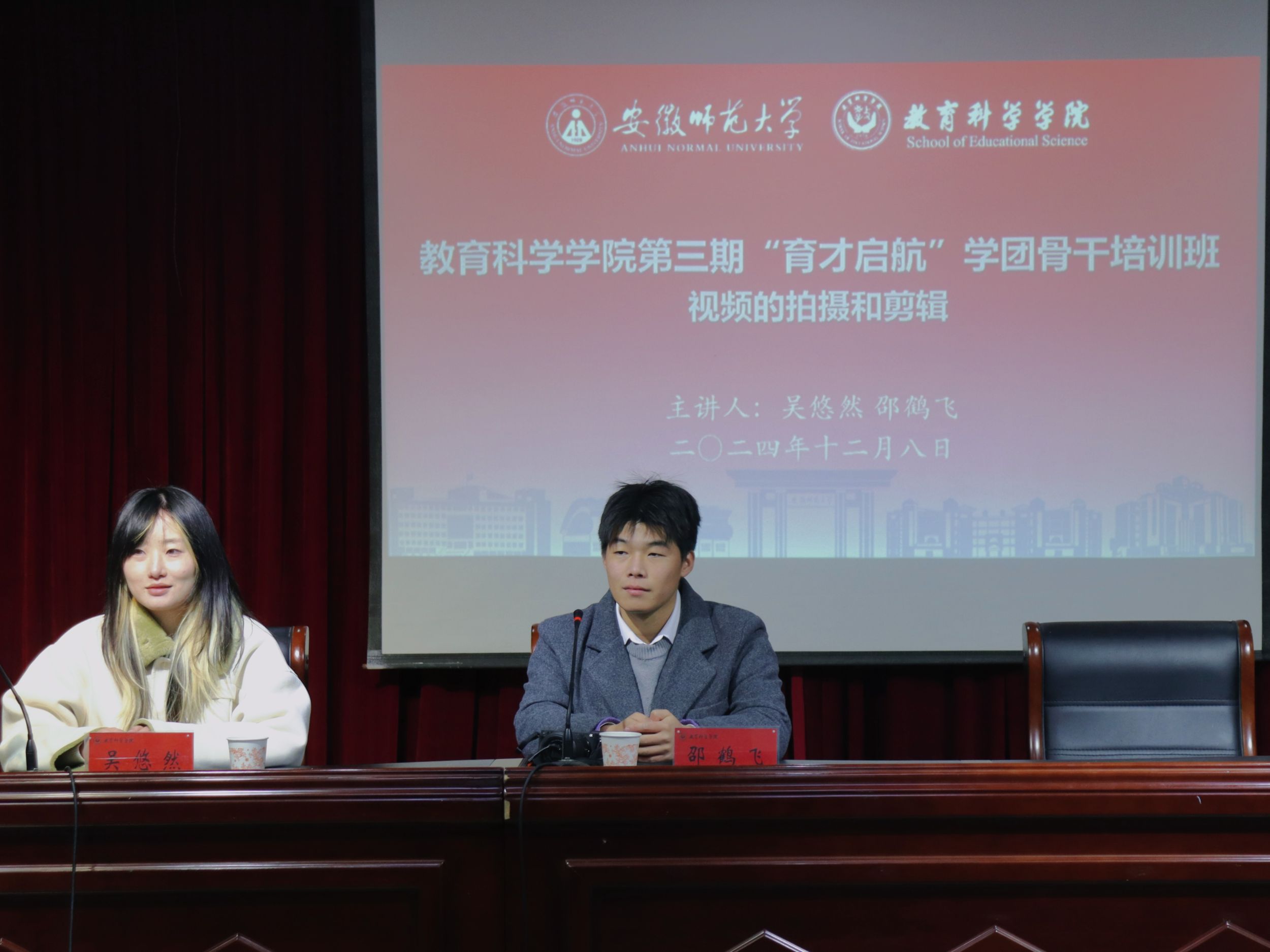 专业筑梦激励教科学子成长。校办公室秘书孙月婷老师开展《办文办会办事工作事务》主题讲座,从自身经历出发详细分享了公文类型、会议布置、事务安排等方面内容,同学们受益匪浅。校团委王申振老师开展了《挑战杯竞赛》主题讲座,从近年的获奖作品切入,讲述了如何完成一份优秀的竞赛作品,同时积极鼓励学生们发挥专业特长,在比赛中提升自身能力和专业水平。法学院挑战杯国家级获奖选手朱瑞中,为同学们分享了自身参赛经历。校大学生记者团吴悠然和邵鹤飞开展《视频的拍摄和剪辑》主题交流,为同学们讲解了视频拍摄与剪辑的相关技巧。21级小学教育专业王铭宇开展了《活动组织策划》主题分享,详细讲述了组织策划活动的基本流程,以及部门建设与提升方法。23级现代教育技术研究生彭少斌进行《新闻摄影·朋辈分享》主题汇报,详细讲解了相机的使用方法和日常摄影技巧,鼓励同学们积极拍摄,在实践中锻炼技能。