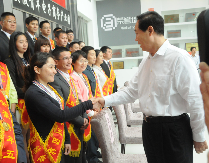 心理学专业2011级新疆籍学生古孜丽努尔.艾尼瓦尔同学荣获“中国大学生自强之星标兵”、安徽省五四青年奖章、安徽省十佳大学生称号,受到时任省委书记张宝顺的亲切接见。