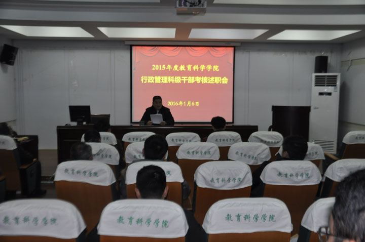 本网讯(教科院 柳丽娜)1月6日下午,学院在院三楼学术交流中心召开学院科级管理干部述职测评大会,会议由院党委书记刘晓宇主持。