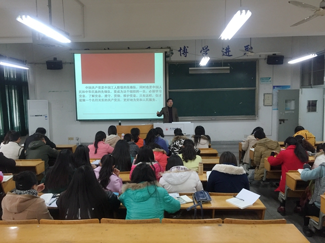 本网讯(教科院 高婷)20151128日下午两点,365英国上市官网第25期学生入党积极分子培训班成员于田楼8302教室进行第四次理论学习活动,本次党课由我院党委书记刘晓宇老师担任主讲,全体入党积极分子认真听讲,记录笔记。