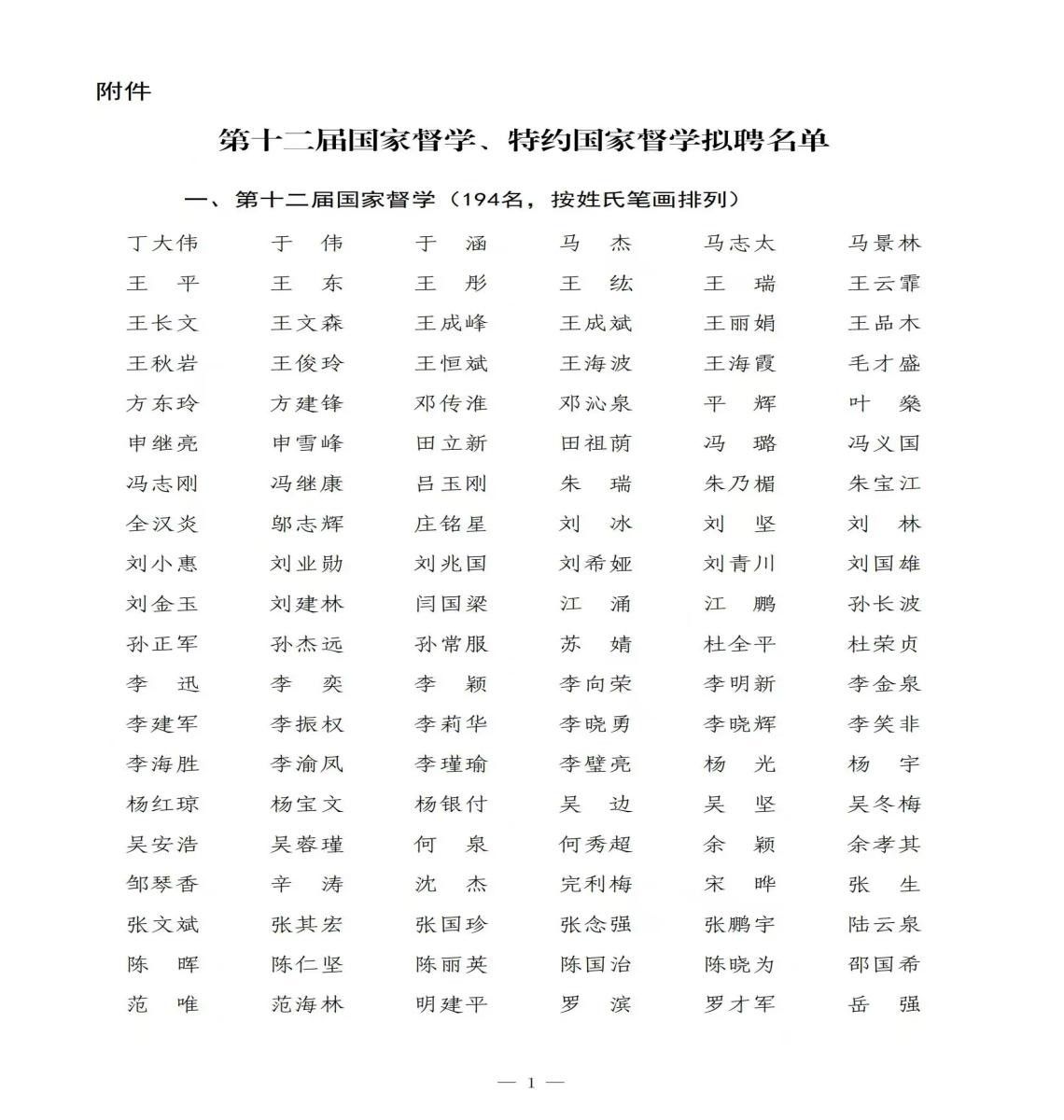为进一步监督、指导、评估和监测教育过程,确保教育法律、法规和政策的贯彻执行,推动教育高质量和公平发展,教育部根据《教育督导条例》《国家督学聘任管理办法(暂行)》和教育督导工作需要,经各方推荐和审查,于1月14日公布第十二届国家督学名单。