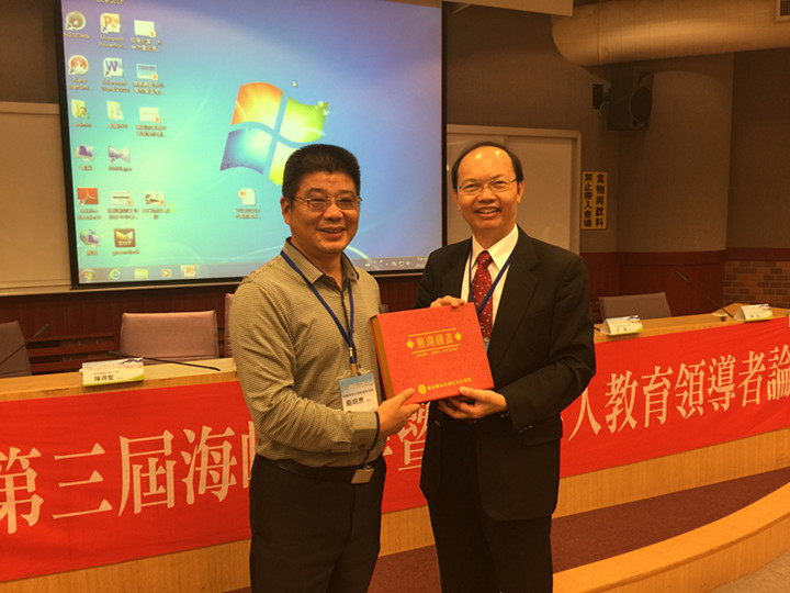 论坛期间,学院院长葛明贵与台湾暨南国际大学教育学院院长杨振升进行了亲切交谈,双方交流和介绍了学院人才培养、科学研究和社会服务等方面开展的具体工作,并将《365英国上市官网院史》赠送对方学院。