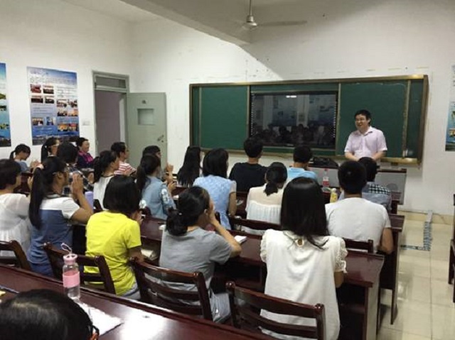 随后,班主任丁园园老师发言。丁老师从班主任的角度对同学们提出了不迟到、不早退、不旷课等硬性要求,然后又从一名教师的角度对同学们提出了多读原著,适当少读教科书,学习心理学时尊重自己内心感觉等合理建议。之后丁老师给同学们播放电影《三傻大闹宝莱坞》片段,旨在告诉同学们要学习影片主人公的创新精神,不能成为读死书的“学院派”。同时丁老师也与同学们分享了一些她的课堂上的趣事,让同学们对应用心理学的学习充满了期待。