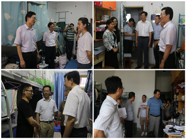 12号下午四时许,校党委副书记、校长张庆亮在学生工作处处长刘晓宇和学院全体领导的陪同下深入我院本、硕毕业生宿舍,送上毕业祝福,检查安全问题,并与毕业生进行亲切的面谈。张庆亮校长仔细询问了毕业生离校手续办理情况、行李准备情况、就业情况等,并给予同学鼓励与支持。他教育毕业生们要不忘初心、砥砺前行,在未来人生道路上勇攀高峰,取得更加优异的成绩。与此同时,毕业生们再次表达了自己对母校的眷恋和不舍,表示今后无论身在何方,都会铭记老师教导,牢记母校恩情。校院领导把学生的安全幸福牢记心间,多次强调要注意离校安全。千言万语道不尽离别情谊,所有情意定格在一张充满笑意的大照片中。