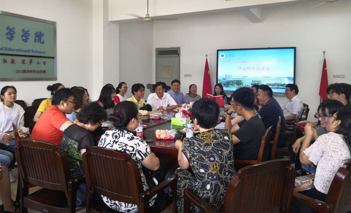 座谈会上,2019届心理学、应用心理学毕业班同学回顾了自己四年大学生活、学习的感悟和收获,感恩母校培养,感恩老师们的教诲,并就心理学专业人才培养、教育教学、学科发展提出了建设性的意见和建议。各位教师代表结合自身学习工作以及教育教学的收获,对同学们今后工作学习提出了殷切的期望和深情叮咛。最后,院长桑青松对2019届心理学、应用心理学毕业生顺利完成学业热烈祝贺,对将走上工作岗位或进一步深造表示了真诚的祝福。他表示,希望同学们无论何时何处都要心怀感恩,心系母校,欢迎同学们常回家看看,关注母校发展,加强与母校联系;也祝愿同学们,在今后的工作学习中,再创辉煌,取得更大的成绩!