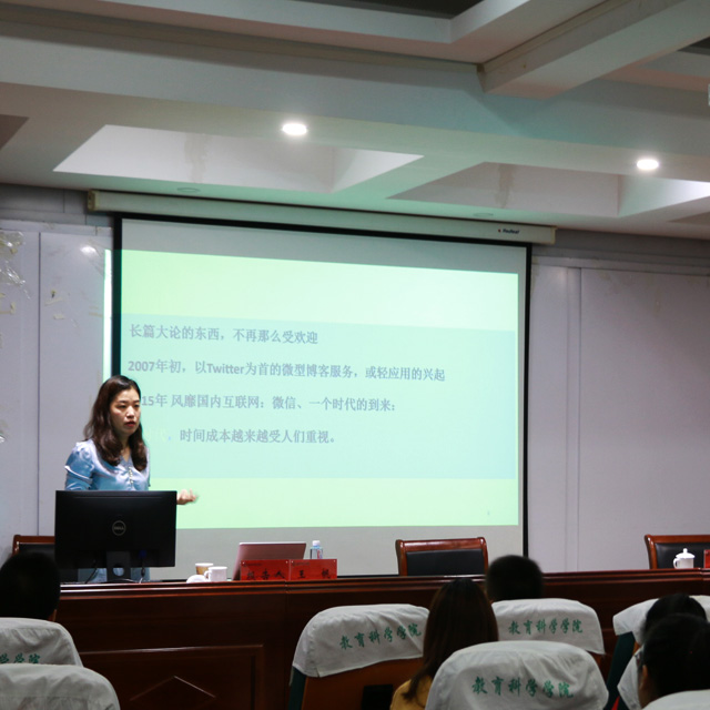 报告为我们打开了微时代社会化学习的大门,有助于加深研究生们对微时代下社会化学习的理解,拓宽学术研究的视野,也为提升我院学子的学术水平以及日后进行相关研究带来启发。