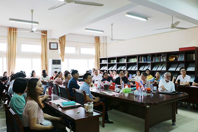 会议伊始,与会人员一同观看了学院对外宣传短片,全方位展示了学院近年来在人才培养、科学研究、社会服务、学科建设等方面取得的突出成效。院长桑青松教授表达了对莱德曼夫妇莅临学院指导的热烈欢迎,并希望两位的到来能对学院学科建设提供宝贵意见。随后,生科院陈明林教授、教科院全莉娟副教授分别就各自的研究领域和研究成果作了主题为《Biological Sciences Education》和《Influence of College Students' Internet Altruistic Behavior and Network Social Support on Subjective Well-being》的英文汇报,莱德曼夫妇从选题意义、研究方法等方面提出了中肯的建议。