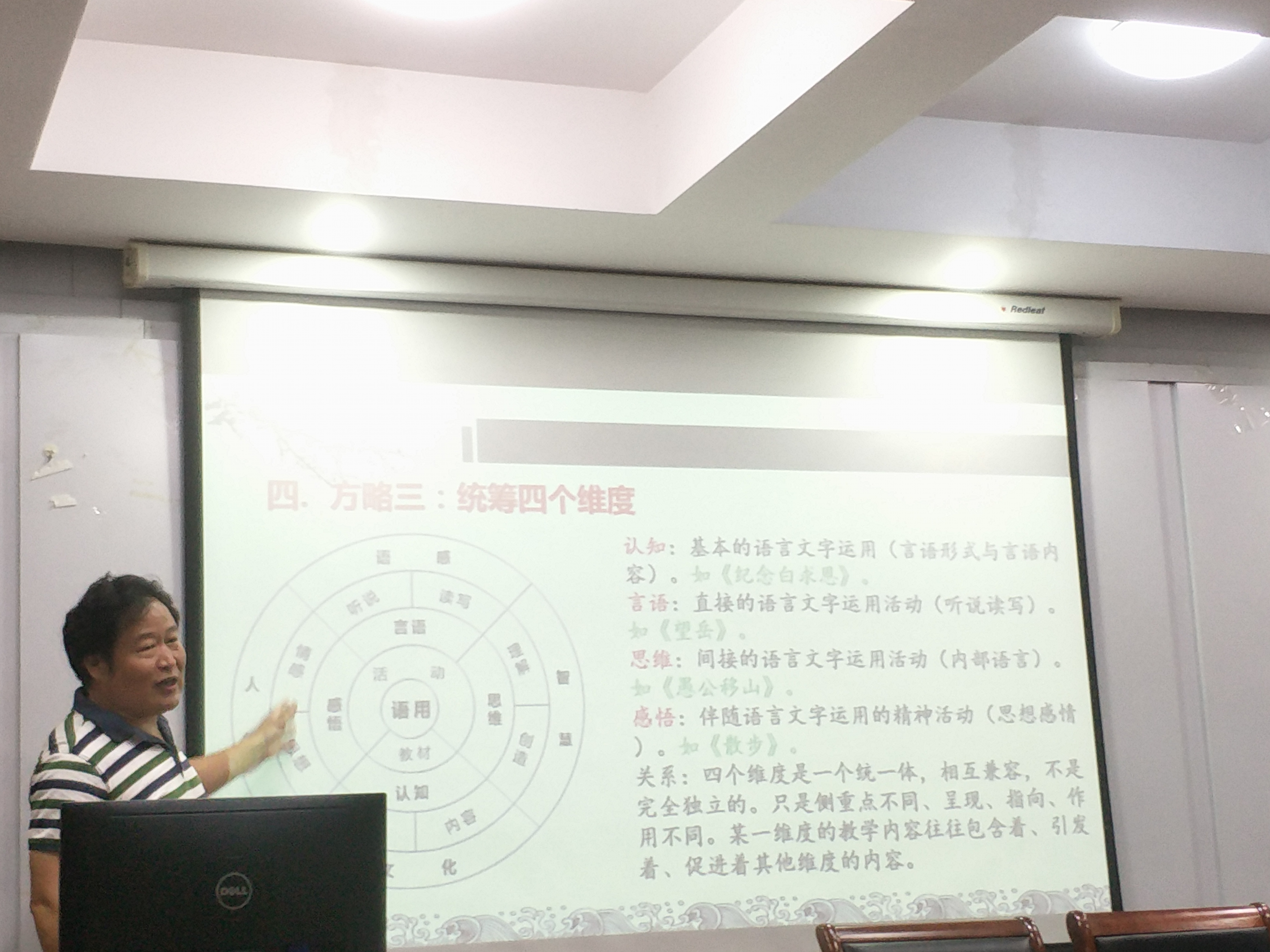 本次培训活动由安徽师范大学文学院副教授、硕士生导师夏家顺老师主讲。夏教授从语文教学内容重构的必要性、语文教学内容重构的四个方略等方面向参训教师生动地阐述了语文教学内容重构的意义和方法,为今后语文课堂教学的改革指明了方向。