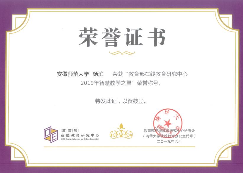 本网讯(教科院)近日,教育部在线教育研究中心公布了2019年度“智慧教学之星”荣誉称号评选结果,我院杨滨老师获此殊荣。