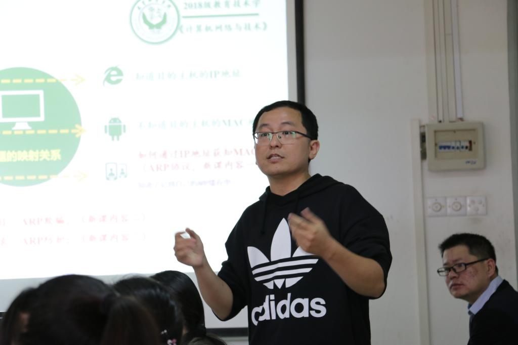 本网讯(教科院文/杨滨、朱丹丹 图/黄引娣)10月23日上午,我院教育技术学专业席鹏老师在田楼后楼508实验室举行了《计算机网络与技术》本科教学观摩课,教学内容是“MAC地址获取与安全防护”,授课对象为2018级教育技术学专业学生。院教学督导组专家、学院领导及中青年教师共同观摩了此次示范课。