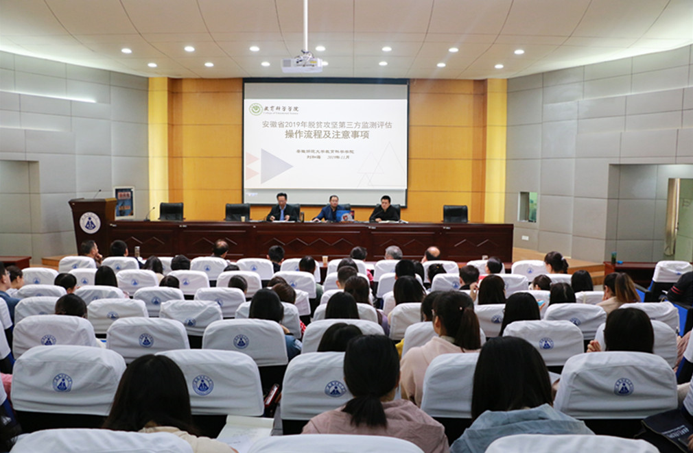 本网讯(文/曲春璐 图/王爱玲)为贯彻落实《安徽省2019年脱贫攻坚第三方监测评估实施方案》要求,切实完成我省扶贫办关于做好2019年脱贫攻坚第三方监测评估工作部署,365英国上市官网于11月13日在田楼报告厅召开2019年脱贫攻坚第三方监测评估动员暨培训会。本次会议由学院副院长聂竹明主持,院党委书记方泓、脱贫攻坚第三方评估专家组教师刘和海教授、我院全体带队教师及参评研究生出席会议。