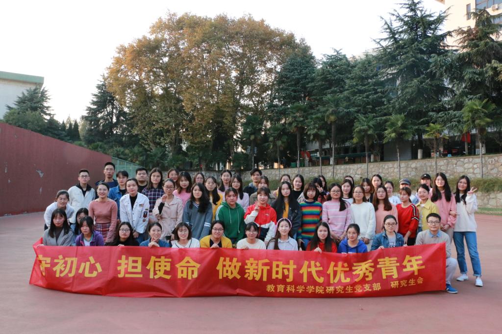 本网讯(文/陈秋月 图/王爱玲)值此新中国70华诞、五四青年节一百周年之际,2019年11月10日下午,由教科院研究生党支部主办、研究生会承办的“守初心、担使命,做新时代优秀青年”主题党建活动在赭山校区东操场顺利开展, 我院研究生各支部党员、入党积极分子、研究生会成员约50名研究生同学参加了此次活动。