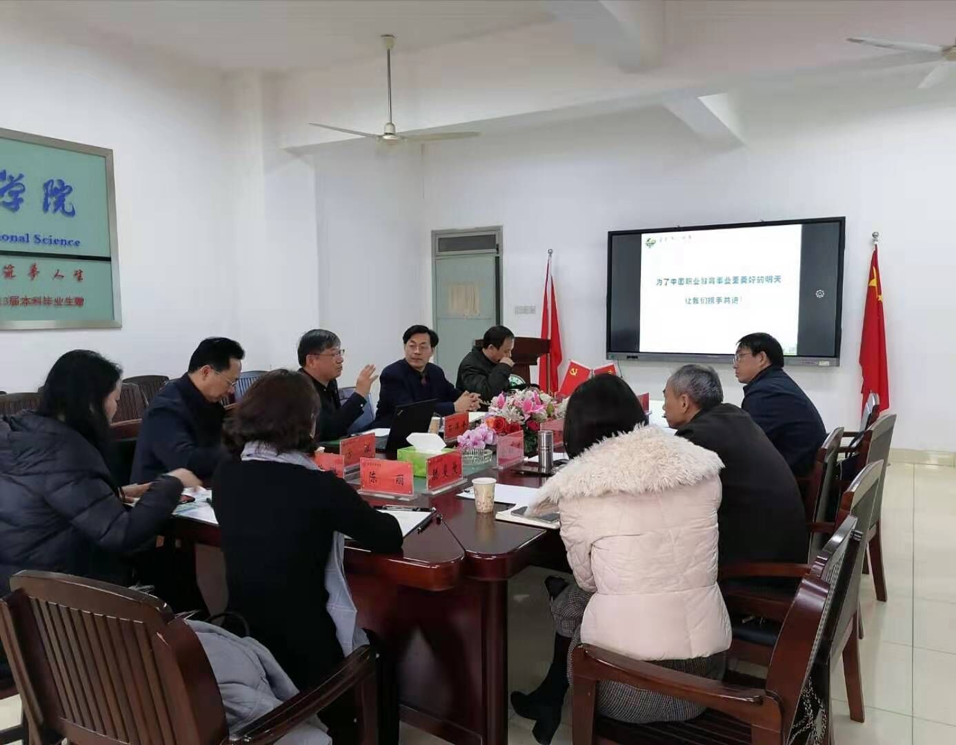 (本网讯 文/杨文静 图/张大强)12月23日上午,华东师范大学终身教授、博士生导师、华东师范大学职业教育与成人教育研究所名誉所长、石伟平教授,孙玫璐副教授,芜湖市教育局职成科陈丽老师,应邀来我院做“职教改革与学科建设”主题交流,院党委方泓书记、院长桑青松教授及学院相关教师出席本会,研究生到场学习。本次会议由桑院长主持,向石伟平教授一行表示热烈欢迎之后,桑院长和与会专家交流了我院学科建设发展情况。
