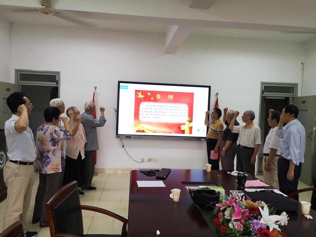 最后,退休教工党支部全体与会党员面向党旗,严肃而庄重地重温了入党誓词。