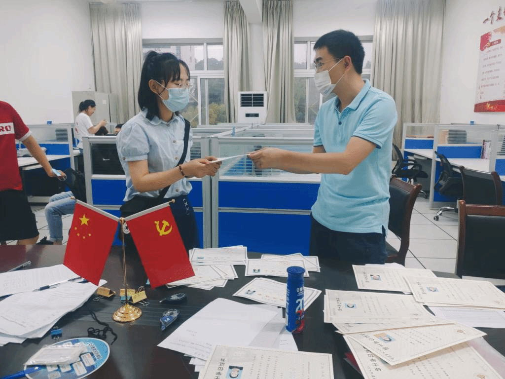 当手捧着象征学习结业的毕业证和学位证,2020届的毕业研究生们就要真正离开象牙塔了。在做好常态化疫情防控,充分保障学生安全的前提下,为将这项充满仪式感的工作落实到位, 7月6日下午6点,毕业班辅导员在办公室为同学们一一颁发证书。毕业生们穿戴整齐,欢聚一堂,辅导员将毕业证书、学位证书按照学号顺序一一颁发,接过老师手中的毕业证书,一句饱含希冀的“毕业快乐”凝聚了恩师道不完的深意。一同下发的还有学院精心准备的一个纪念帆布包、一块教科院行李牌和一枚师大校徽,希望教科学子走出校门后不忘初心,仍然记得厚德重教,博学笃行的校训,无论走到哪里,都会践行学思并重,知行合一的院训。
