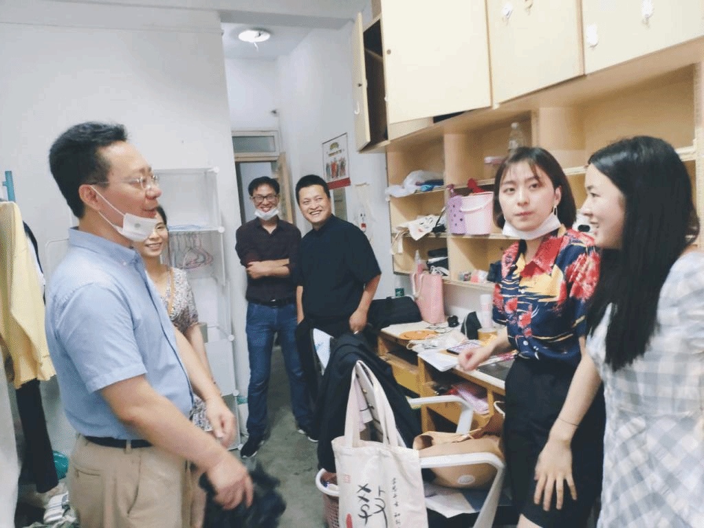 惜别总是在七月,宿舍声声留问候。在毕业研究生即将转身背起行囊,踏上新的征途之际,院领导方泓、研究生工作分管院长聂竹明在毕业班辅导员韩建涛、王礼军的陪同下一起走进2020届毕业研究生宿舍,看望慰问即将离校的毕业研究生。“老家是哪里的?”“工作找好了吗?”“对学校还有什么建议?”每到一个宿舍,领导、老师都亲切地与毕业研究生交谈,细心询问毕业研究生的感受以及离校准备情况,了解同学们在毕业离校期间的问题,关注毕业研究生离校后的学习、生活及工作中的问题,鼓励同学们以积极主动的心态面对未来。同时提醒毕业研究生们提升安全防范意识,做好疫情防控和安全防范,倡导大家文明离校,并祝福毕业研究生们一切顺利。在与各位领导的交谈中,毕业研究生们也纷纷表达了对老师和同窗的不舍之情及对母校多年培养的感激之情,作为教科人,今后一定会秉承“厚德重教、博学笃行”的校训,努力学习、工作,在即将踏上的人生旅途中努力前行!
