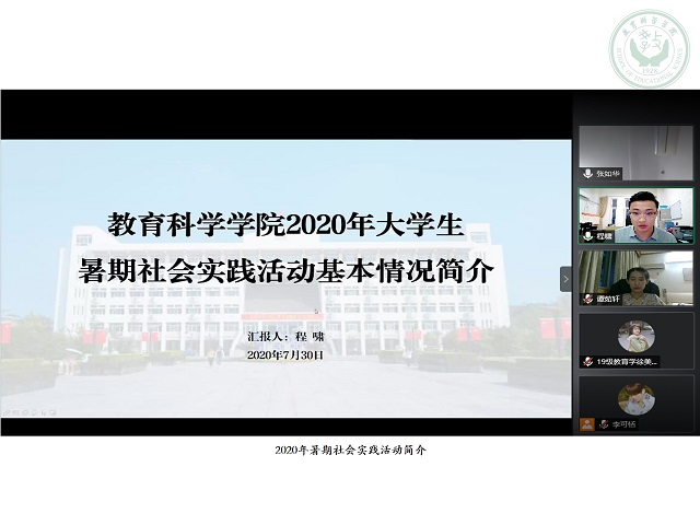 7月30日晚,院团委书记程啸主持召开了“小我融入大我,青春献给祖国;决战脱贫攻坚,投身强国伟业”的专题培训会。本次培训会旨在安排云端团队建设、实践成果上报、学分认定程序等工作,就学生提出的问题进行了专业解答,并为“全心全益·育云相伴”团队的志愿者进行培训。“全心全益·育云相伴”团队基于学院延续7年的“全心全益”赴马鞍山和县爱心支教团队发展而来,是教科院今年暑期社会实践的另一只校级重点团队。2020年,程啸老师已经连续第三年指导该团队进行实践。有别于以往和学生一起深入一线,受疫情影响,本次活动由线下转变为线上。他在培训中指出,变的是形式,不变的是初心,同学们在实践过程中,应及时反思总结,不断改进完善,在专业老师的指导下踏实推进工作,认真完成任务,顺利高效完成活动。
