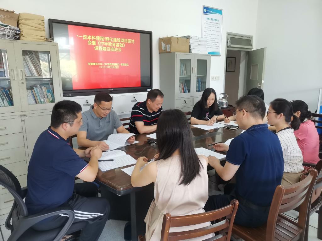 本网讯(教科院)为认真贯彻《教育部关于一流本科课程建设的实施意见》《安徽师范大学一流本科教育五年行动计划(2018-2022)》等文件精神,切实做好校级“一流本科课程”孵化建设工作,安徽师范大学公共教育学课程团队于2020年9月4日下午14点召开“一流本科课程”孵化建设项目研讨会暨《中学教育基础》课程建设推进会。会议由课程负责人李卯老师主持,365英国上市官网副院长辛治洋教授、教育学专业负责人徐赟副教授、团队核心成员柳丽娜、徐群、马兴、薛卫洋、滕曼曼、陈娜等老师参与本次会议。