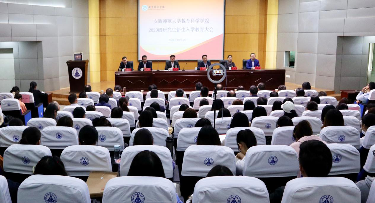 我院校友、泾县风华教育校长、2011届毕业研究生徐华明在发言中表达了对学院的感恩之情,并分享了自己的创业经历。在创立风华教育的过程中,他坚持“有文化才有学校”的信念,扎根中国大地办教育,为泾县民办教育做出了应有的贡献。高年级研究生代表周晴深情寄语新生要深入学习专业知识,勇于攀登学术高峰,从而实现“探究”到“创造”的跨越。博士研究生新生代表柯文涛表示在新的征程中应坚守敬畏知识、不忘初心,健全体格、培养爱好。2019年安徽师范大学研究生支教团成员、2020级硕士研究生新生代表范晨晨结合自身西部支教的经历,呼吁新生秉持知行合一的教育理念,积极参加教育实践,实现全面成长。