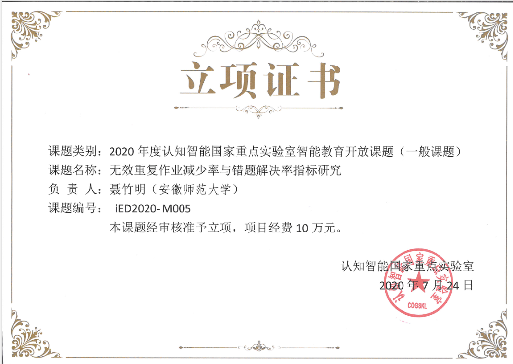 本网讯(教科院)近日获悉,聂竹明教授申报的“无效重复作业减少率与错题解决率指标研究”项目获批认知智能国家重点实验室开放基金。这是聂竹明教授第二次获得国家重点实验室开放基金项目。