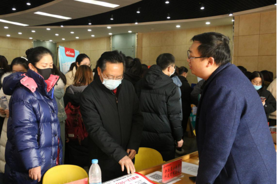院党委副书记张如华和毕业班辅导员谭茹轩全程参与本次招聘会,有针对性地给毕业生们做个性化引荐工作。期间,院党委书记方泓、院长李宜江、副院长辛治洋、聂竹明、何海燕、张更立与各专业负责人也莅临现场。各领导老师向用人单位介绍了学院专业情况、教学特色与发展现状,对他们长期支持教科院毕业生就业工作表示了诚挚感谢,并且希望他们能够广纳贤才,多多指导毕业生求职就业。