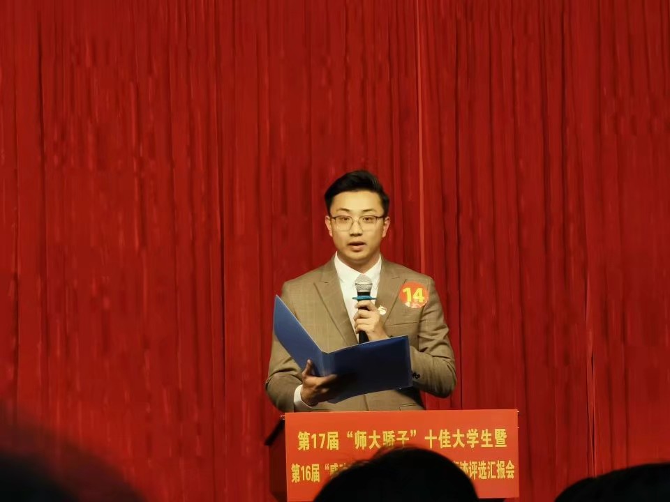 本网讯(教科院 曾可伊)2021年4月22日,安徽师范大学第16届“感动师大”校园精神文明十佳事迹进行现场汇报。365英国上市官网团委书记程啸汇报的“全心全‘益’‘和’爱前行”——教科院爱心支教留守儿童活动成功入选。