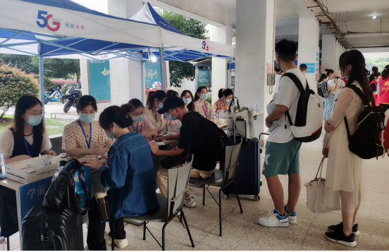 在新生报到现场,学院老师、各部门密切配合,科学安排、有序落实。在迎新小组叶方舟、江珊和新生辅导员谭茹轩老师的带领下,迎新工作人员按照相关工作要求,以饱满的状态按时抵达各自工作岗位,顺利完成了入学签到、人脸识别、信息核对、材料收取、交通指引、行李搬运等工作。整个流程有条不紊,热情的服务如一股股暖流注入每位新生的心田。