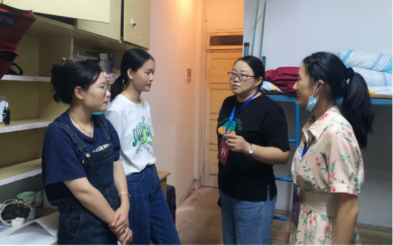下午六时,学院党委副书记杜凤、辅导员谭茹轩走访了研究生新生宿舍,看望了解新生。杜凤代表学院对新生的到来表示热烈欢迎,并亲切问候了新生到校后的感受,鼓励同学们调整好心态,以朝气蓬勃的精神迎接即将到来的研究生生活。
