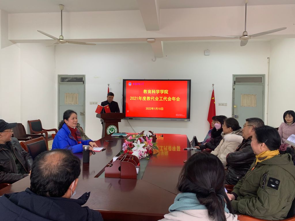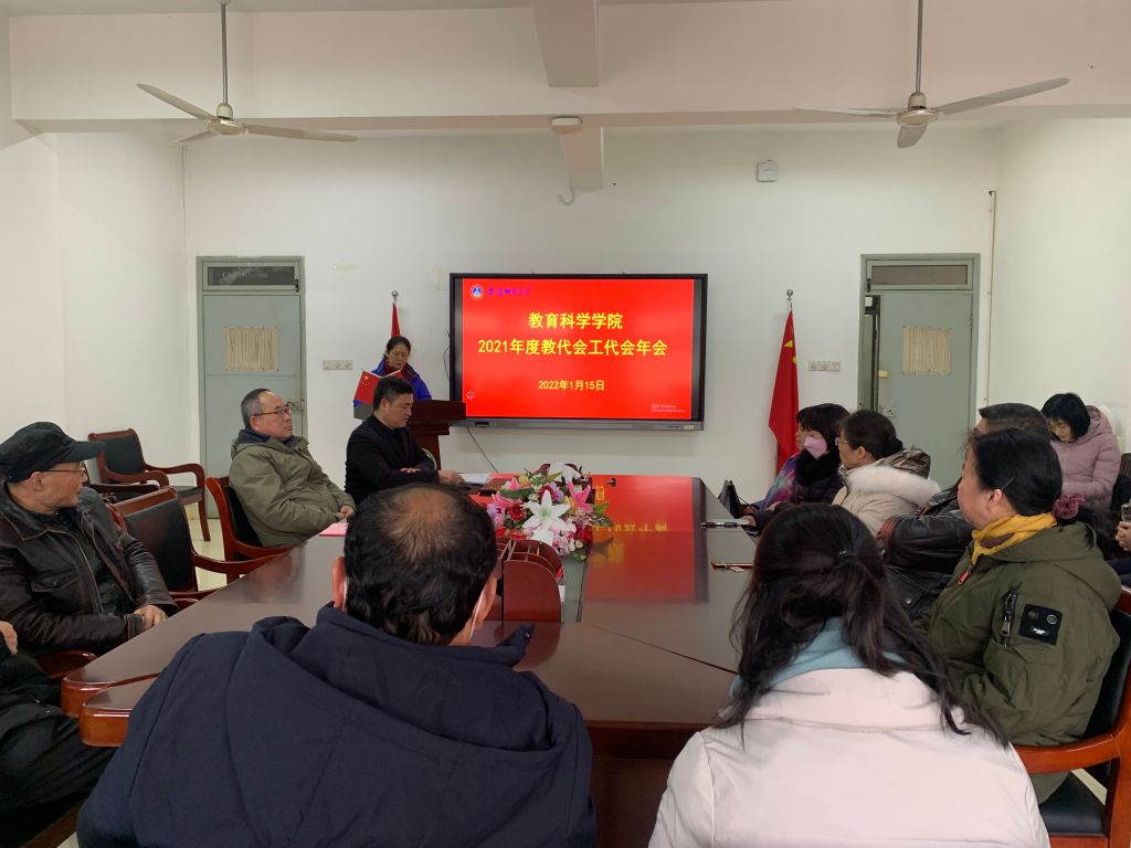 本网讯(教科院 黄引娣)1月15日下午,学院在三楼308会议室召开2021年度教代会工代会年会。学院教代会和工代会代表参加了本次会议,会议由院长李宜江主持。